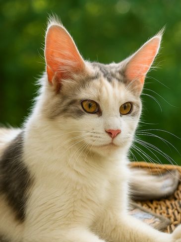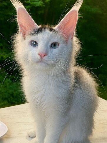 A future Queen. Born in our cattery, Lily with her piercing blue eyes & white coat with a striped black and gray tail make her truly unique. Parents are Queen Penny & Sire Winston